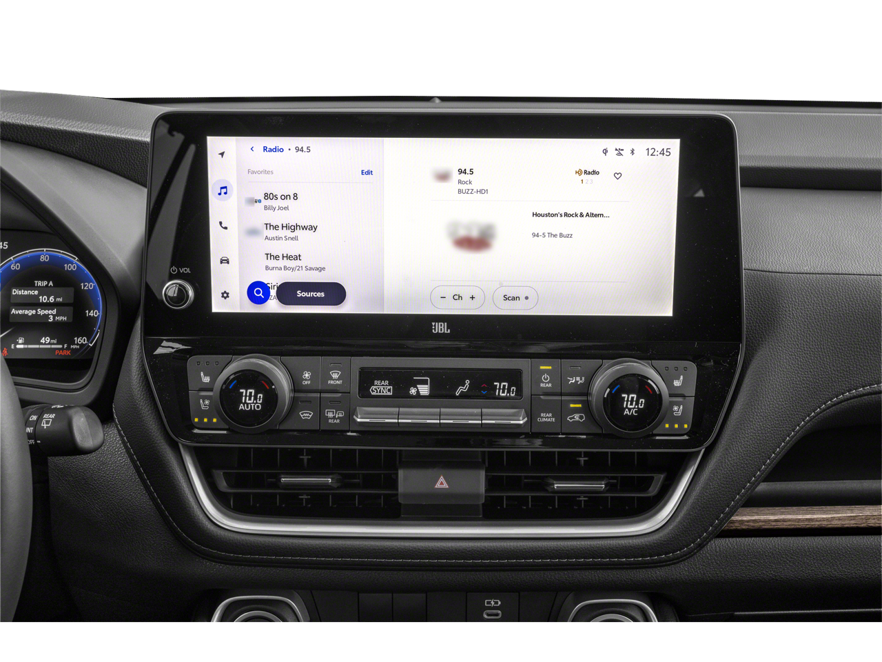 - Radio: 12.3" Toyota Audio Multimedia w/JBL Premium -inc: 11 speakers, voice activated commands, dual Bluetooth phone connectivity, wireless Apple CarPlay and Android Auto compatibility, HD Radio, USB and SiriusXM w/3-month platinum plan trial subscription